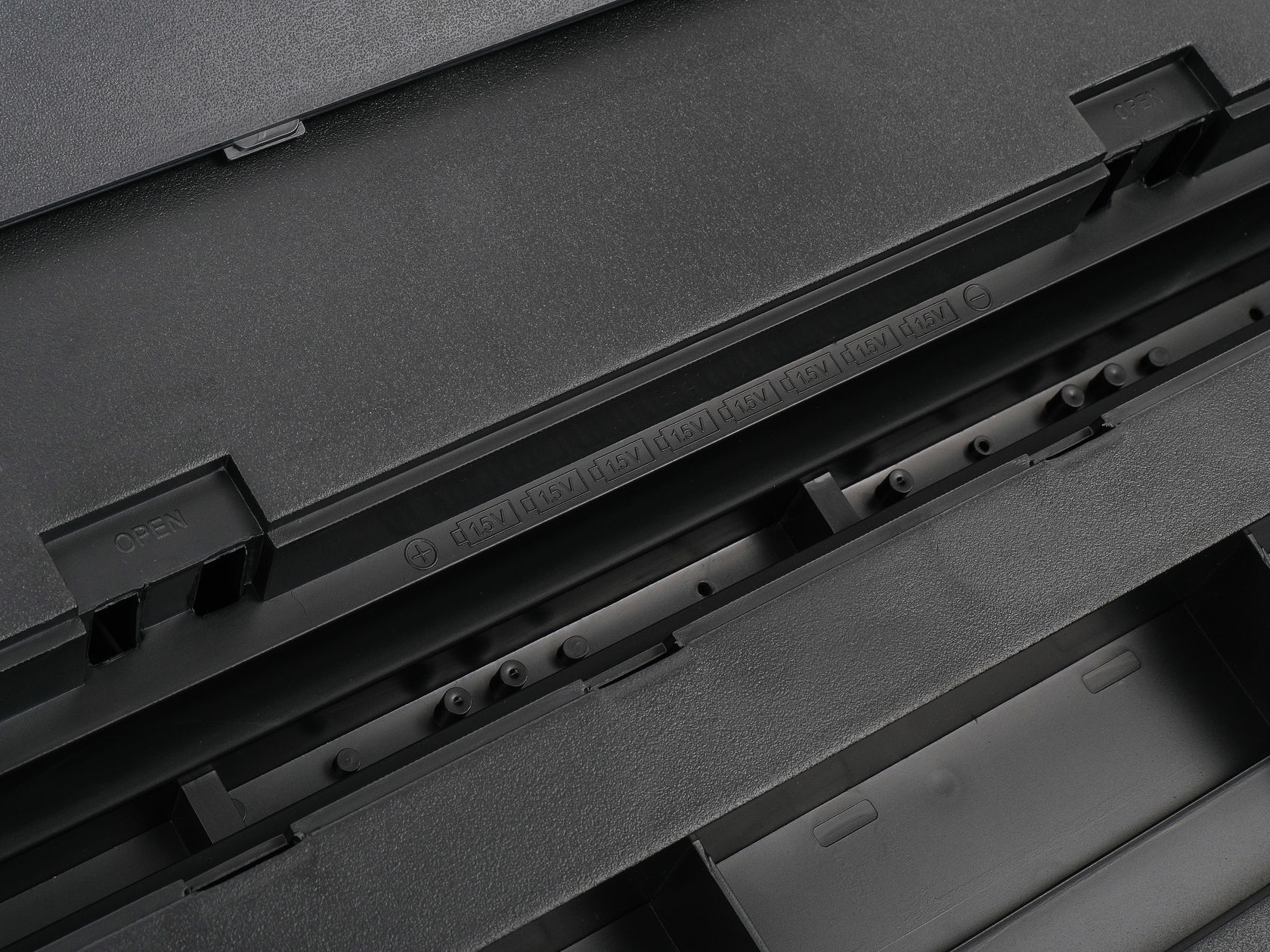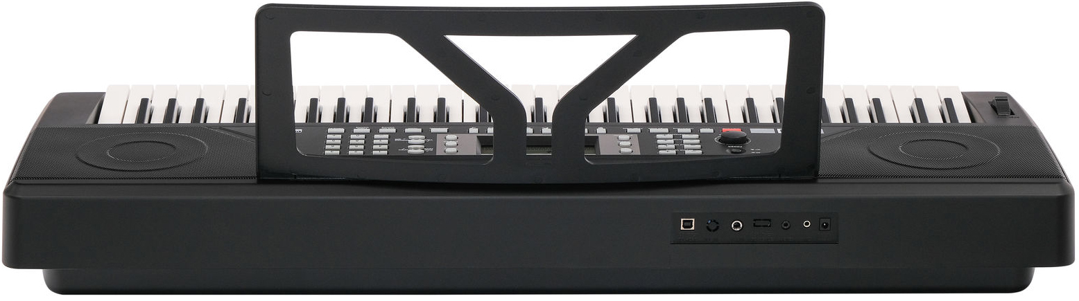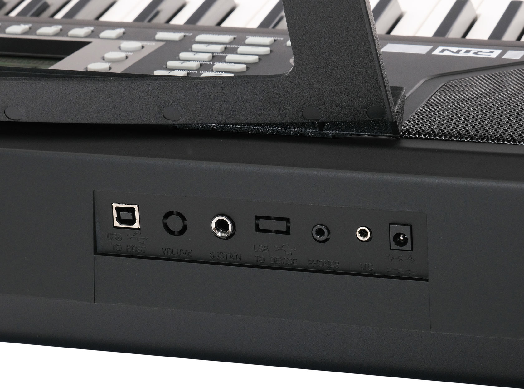 - разъемы подключения внешних устройств: вход питания 9 В постоянного тока, вход подключения микрофона, выход подключения наушников, гнездо подключения педали сустейн, разъем USB MIDI.