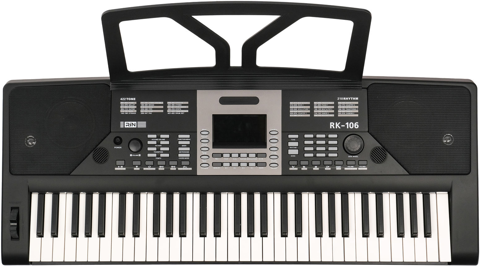 - другие элементы управления: выключатель питания, регулятор громкости, регулятор громкости аккомпанемента, функция MP3.