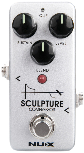 - педаль NUX Sculpture Compressor обеспечивает постоянный уровень громкости и улучшает сигналы на верхнем и нижнем краях. Когда вы начнете играть на своей гитаре, она очистит громкие (пиковые) ноты и увеличит сустейн, подняв уровень затухающих (тихих) нот. Sculpture также способствует созданию основы сигнала, которая подается в остальную часть вашей цепи эффектов.